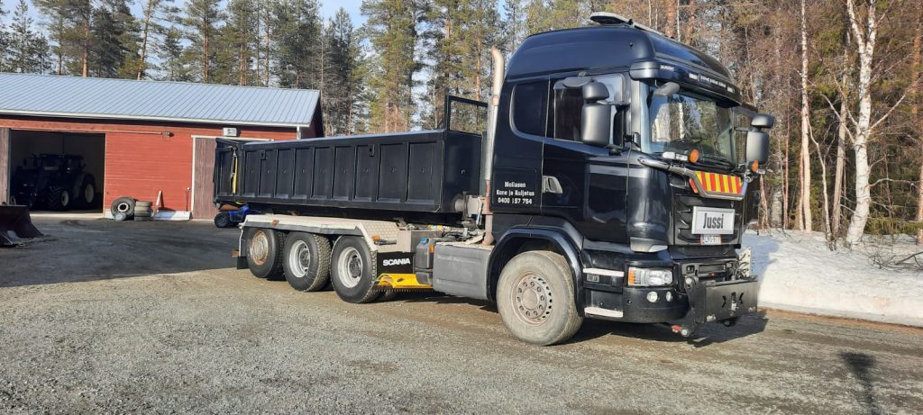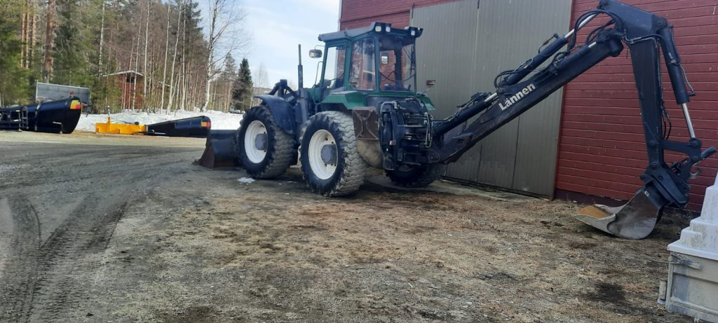Kalusto Scania kuorma-auto Valtra D202 Lännen kaivuri Tieaura Valliaura Koneenkuljetuslava Koneenkuljetuslava Hiekotin Kesantomurskain Kärkiaura Rengaskone